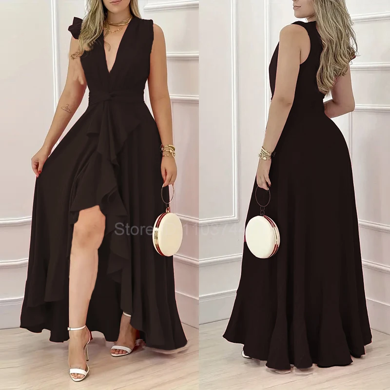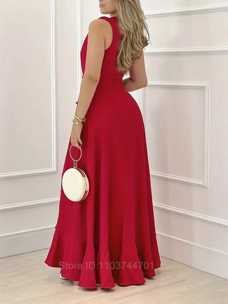 Women Chiffon V Neck Formal Evening Gowns Red Sexy Spaghetti Bodycon Loose Leisure Robes Club Party Celebrate Birthday Dresses